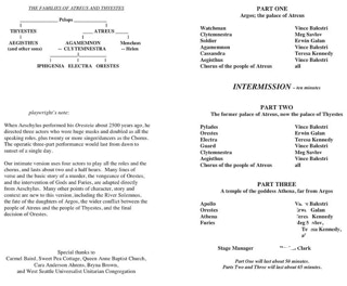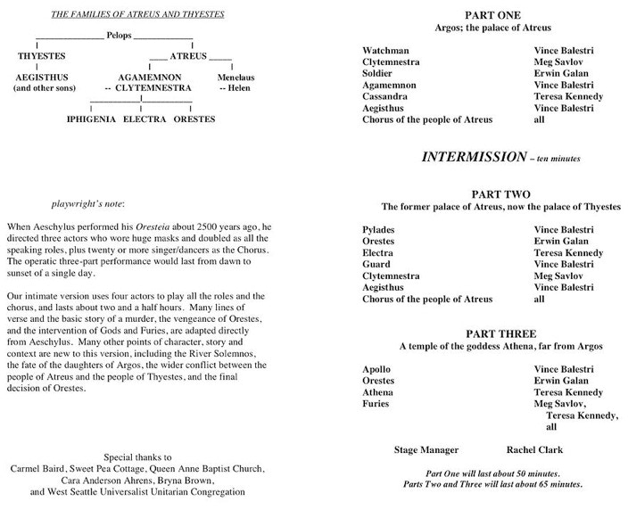 freely adapted by Edward Mast from Aeschylus’ Oresteia