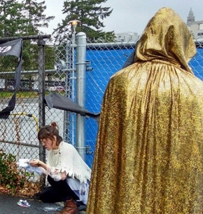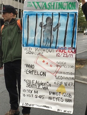 WHERE ONCE THERE WERE CAGES will begin at an undisclosed location somewhere in what is currently called Seattle. We will walk about half a mile on public sidewalks – flat and fully accessible – around a complete city block, ending near the beginning and near the meeting location. The walking performance will last about an hour. Dress for walking and for weather, since a little rain will not stop us.